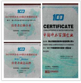 作为净水行业的企业典范,美的净水在众多企业中脱颖而出,获得了“2017中国净水100强企业榜首”“2017中国商用净水设备10强企业”“消费者信赖企业”“消费者满意品牌”等多项荣誉称号。
