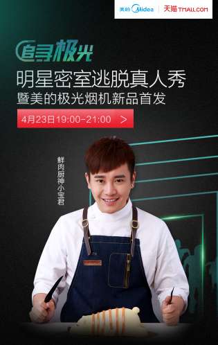 4月23日19:00---21:00,美的厨房电器将把“极光”藏匿于一间机关重重的密室中,邀请奥运颜值CP及2大网红担当,在美的厨房电器天猫直播间/一直播平台(名称:美的厨电 ID:77910409)/映客三平台同步直播密室逃脱挑战的全过程!参与直播将会送出30台美的烤箱+20台美的吸尘器!千万不要错过这档诚意与趣味同在的烧脑直播!