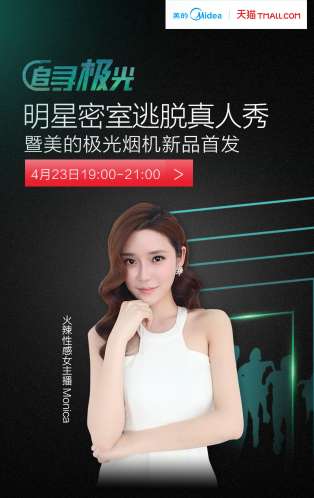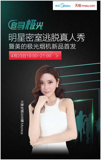 火辣性感女主播Monica亮点四:美的厨房巨资打造密室,惊险刺激又烧脑 “追寻极光”的密室由美的厨电斥巨资倾力打造,酷炫逼真的场景、刺激烧脑的机关,并且在游戏中完美融入美的极光烟机的最新技术,神秘十足。飘渺、神秘的极光就藏匿于机关重重的密室中,要求玩家经历重重考验,“集齐5个彩瓶,打开极光”,才能成功逃脱密室。绝对是暴露智商、情商的一个游戏,想想就觉得很刺激。