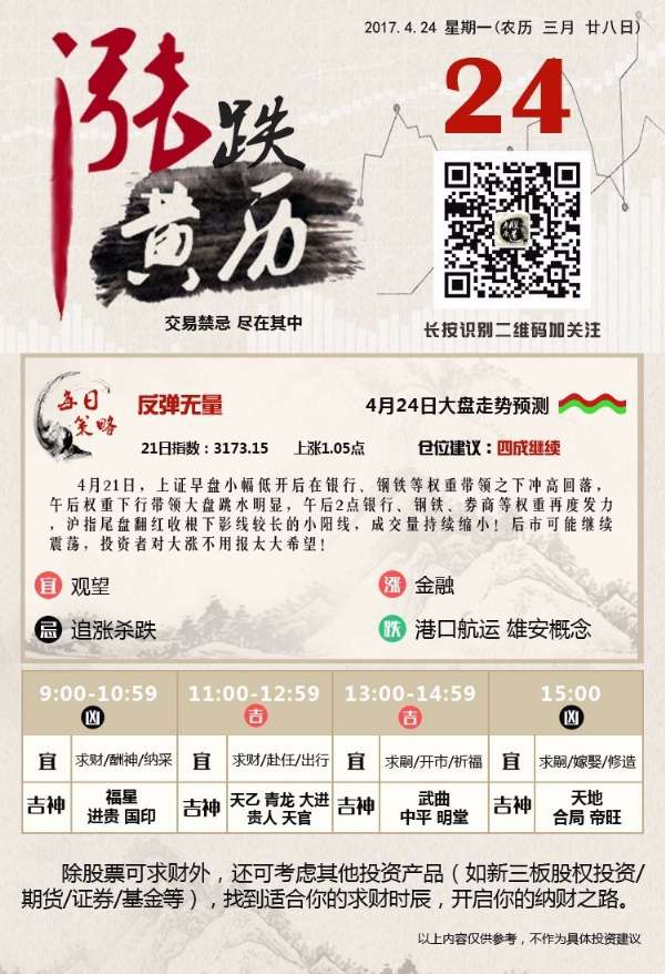 4月21日,上证早盘小幅低开后在银行、钢铁等权重带领之下冲高回落,午后权重下行带领大盘跳水明显,午后2点银行、钢铁、券商等权重再度发力,沪指尾盘翻红收根下影线较长的小阳线,成交量持续缩小!后市可能继续震荡,如果量能没有跟上,想要大涨可能性很低!