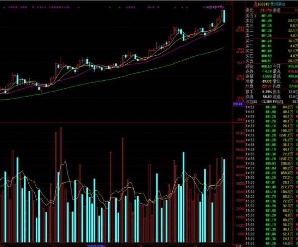贵州茅台冲上400元大关之后继续发力,昨日收于415.31元,跻身为全球第一市值酒类股;