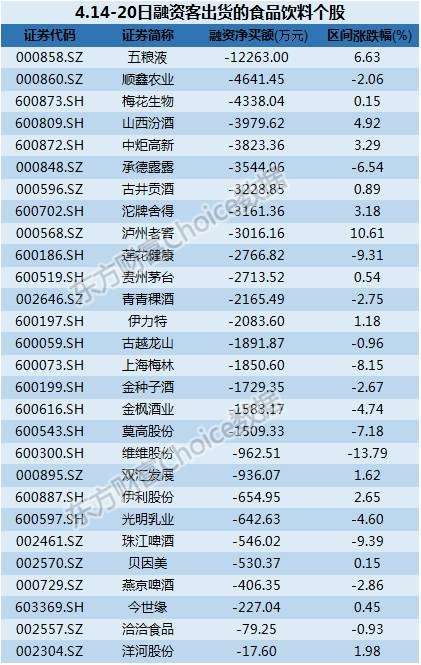 另外双汇发展、伊利股份、光明乳业等其他食品饮料龙头也遭遇融资客出货,分别净卖出936万元、654万元和642万元。