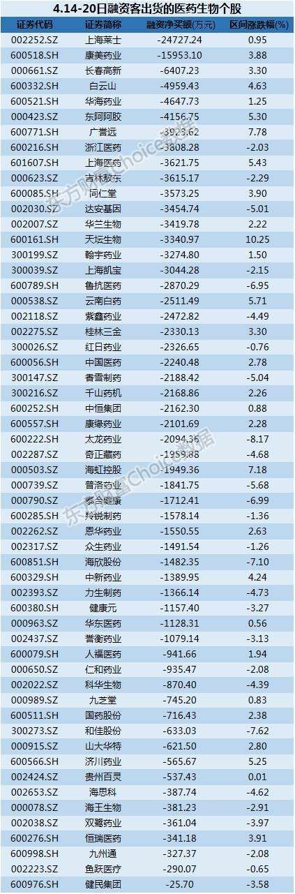 医药股方面,也有许多龙头股出现在融资客的卖出名单上,康美药业、东阿阿胶、同仁堂、云南白药、中国医药分别遭净卖出1.59亿、4156万、3573万、2511万、2240万元。