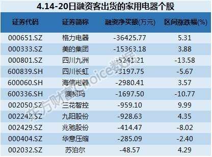家电板块方面,龙头股遭融资客出货的迹象更为明显,格力电器和美的集团净卖出额列第一和第二,分别遭净卖出3.64亿元和1.54亿元;另外海信电器、九阳股份、苏泊尔等家电龙头也遭净卖出。