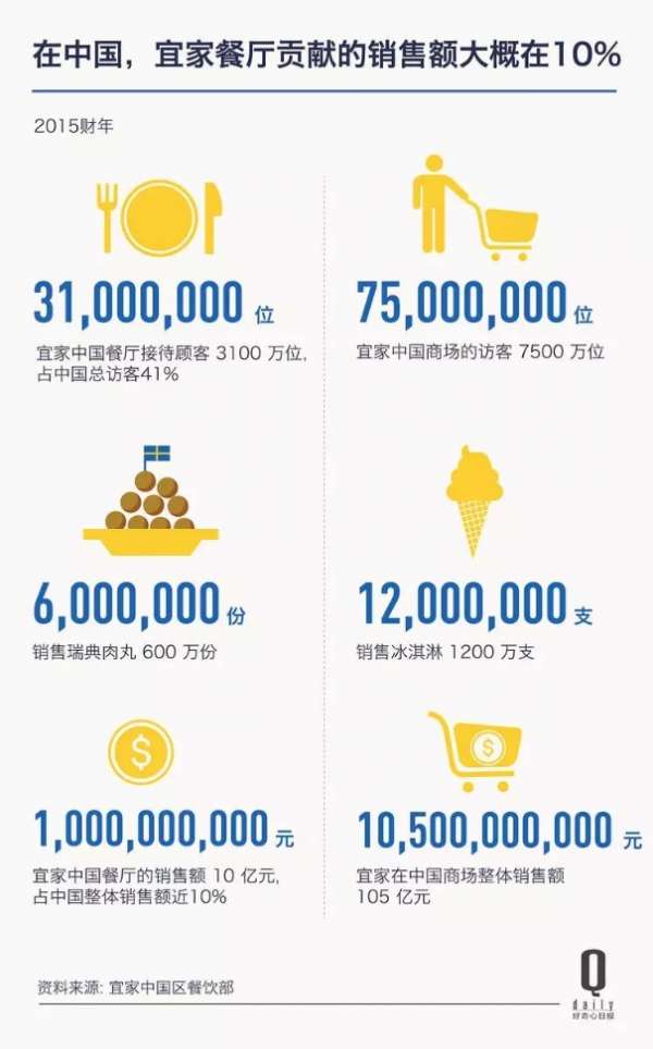 自从2015年宜家餐厅重新装修以来,食品销售额增长了大约8%。如今,宜家每年会服务来自全球48个国家的6.5亿人次的食客。