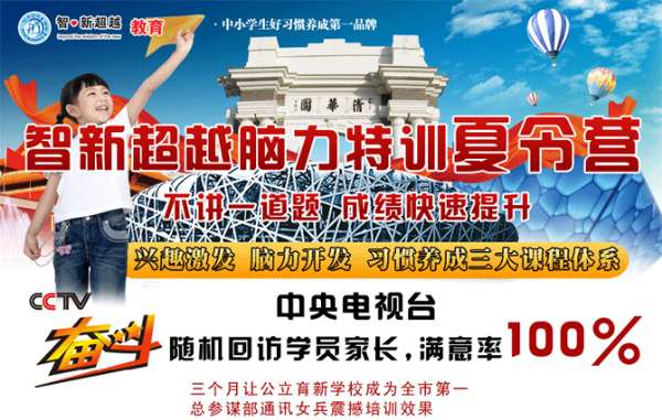 学校简介 智新超越—国内青少年创新思维训练基地 \u00A0\u00A0\u00A0\u00A0 北京智新超越教育总部位于清华大学,是专门从事潜能开发,脑力培训的机构,公司成立以来,致力于研究清华、北大等知名院校学子的学习和脑力训练方法,雄厚的师资力量,先进的技术成果,高端的营销团队,自由的产品和服务,全心全意为中国学子打造创新思维教育,脑力培训的平台。公司拥有多项系统健脑法等六项脑力开发专利,通过全脑开发及与时俱进的经典国学感恩让学员心智模式达到较佳状态,充分发挥孩子的优势潜能,因材施教,培育智慧人才! \u00A0\u00A0\u00A0 2010年被众多媒体评为“学生家长较满意的培训机构” \u00A0\u00A0\u00A0 中国劳动和社会保障部CETTIC智优培训师《职业培训证书》认证机构 \u00A0\u00A0\u00A0 因好习惯养成体系的显著效果,2010年10月9日中国红十字会世博基金和智新超越教育签订长期战略合作协议,共同推荐中国好习惯教育的公益事业