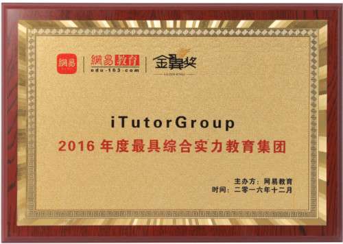 iTutorGroup集团获颁“2016年度最具综合实力教育集团”
