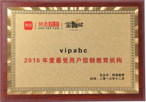 vipabc荣获“2016年度最受用户信赖教育机构”