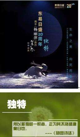 20年的雨露与曦阳可以让一颗小树繁叶蔽天,20年的窖藏与沉淀可以让一瓶美酒醇香四溢,20年的专注与超越可以让一份执着成为经典与传奇。4月30日东易日盛携手杨丽萍《孔雀之冬》,邀您见证两个经典共同塑造的一个新的传奇。