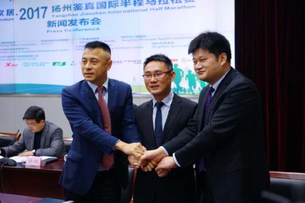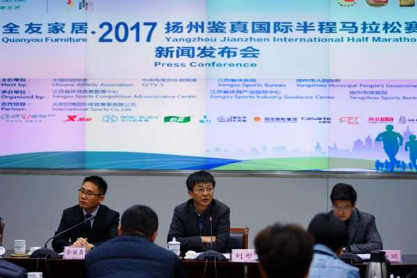 发布会上,扬州市体育局局长佘俊臣代表组委会介绍了2017扬州鉴真国际半程马拉松赛的总体安排及赛事亮点。本次大赛独家冠名商全友家居代表致辞,现场举行了赞助商签约和授牌仪式。