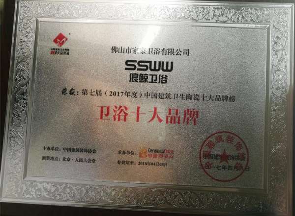 2017年4月8日,第七届中国房地产与泛家居行业跨界峰会暨2017年度中国建筑卫生陶瓷“十大”品牌榜颁奖盛典在北京人民大会堂隆重举行。浪鲸卫浴凭借优秀的产品实力及良好的口碑再次荣获“十大卫浴品牌”大奖。此次峰会由……主办,众多主流媒体及行业内的精英人士见证了此次颁奖典礼的盛况。