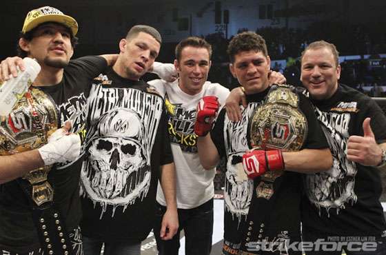 七年前在Strike Force的辉煌属于格雷西战队,他们旗下的3为顶级拳手 “盾牌”杰克-谢尔德、“大麻”尼克-迪亚兹(Nick Diaz)、吉尔伯特-梅伦德兹(Gilbert Melendez)分别获得了中量级和次中量级以及轻量级的冠军腰带。这让格雷西战队久负盛名。