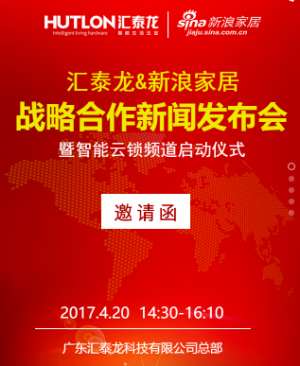 ??2017年4月20日,汇泰龙&新浪家居战略合作新闻发布会暨智能云锁频道启动仪式将在汇泰龙总部盛大举行,齐邀您共同见证,并为提高中国家庭用锁安全与体验出一分力!??