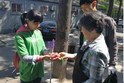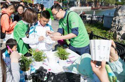 当天参与环保互动的星巴克志愿者,分成10个组,沿着后海进行近5公里环湖徒步,沿途与社区居民和游客分享环保知识,捡拾并清理垃圾杂物。在自己身体力行的同时,还积极邀请更多社区居民加入,一起动手进行绿植栽种、赠送环保袋等趣味活动。