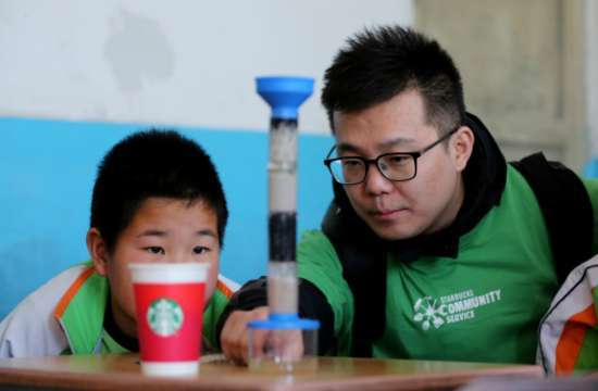 这所民办学校,其就读学生多来自农村,部分是贫困和留守儿童。学校现有课程以文化课为主,课外内容较少。“了解到这里的孩子们需要更多陪伴、希望接触更多课外知识,我们很快策划了这次志愿服务,作为今年‘全球服务月’的主题。”志愿者苏建美和她的同伴们,是来自沈阳各个星巴克门店的咖啡师。日常工作中代表专业与亲切的“绿围裙”,是大多数人对他们的印象。今天,咖啡师们把这抹绿色带到白清寨,用“有温度”的环保小课堂,向孩子们传递关爱。
