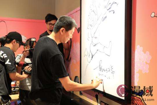 当天,台湾著名漫画家敖幼祥到场亲手绘制动漫主题餐厅贺图,让漫迷们有机会近距离一睹漫画界“大师兄”的风采。敖老师和杭州高新区(滨江)文创办主任高翔、杭州肯德基有限公司总经理徐菁睿以及杭州友诺文化创意有限公司总经理张磊一起为主题餐厅揭幕,见证动漫之都与肯德基的精彩碰撞。