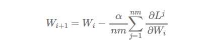 现在,假设我们把样本分配到n个工作节点,每个节点在m个样本上进行学习(节点1处理样本1,……,m,节点2处理样本m+1,……,2m,以此类推),则得到:
