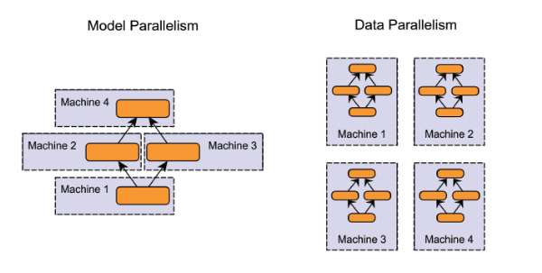 在模型并行化( model parallelism )方法里,分布式系统中的不同机器负责单个网络模型的不同部分 —— 例如,神经网络模型的不同网络层被分配到不同的机器。