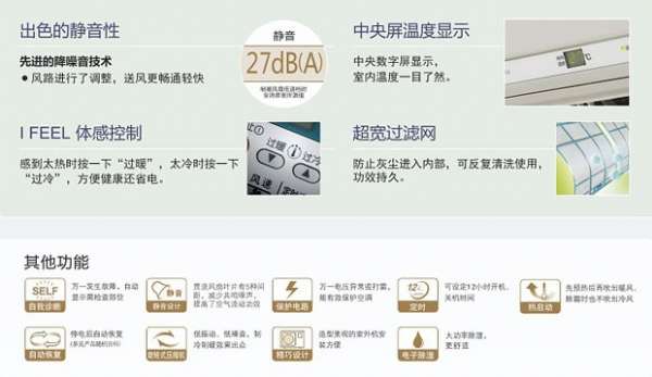 【家电沸腾恵】出色的静音性!I FEEL体感控制,健康更省电!中央屏温度显示,室温一目了然!超宽过滤网,防尘更清洁!