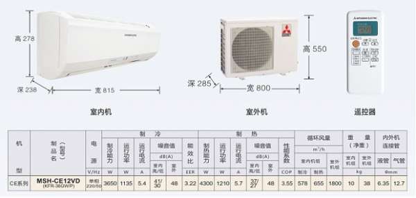 三菱电机 MSH-CE12VD[参考价格]\u00A0 3680元[联系方式] \u00A0京东商城[报价查询]\u00A0空调产品报价三菱电机产品报价