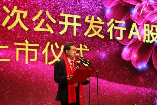 ▲周大生董事长周宗文在股票上市仪式上致辞