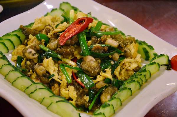 海鲜桂花炒蛋,炒蛋的火侯掌握的很好,蛋很嫩又不生。