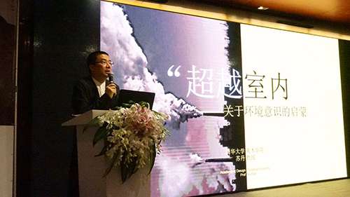 作为候选人,中国建筑学会室内设计分会副理事长、清华大学美术学院副院长/教授/博士生导师苏丹先生和中国建筑学会室内设计分会理事、无间设计首席设计总监吴滨先生在活动现场发布主题演讲。苏丹先生以《超越室内—关于环境意识的启蒙》为主题,从“自我”、“社会”、“自然”三大方面讲述关于环境意识的启蒙,认为自我、社会与自然三者相互联系相互影响,自然蕴含无限可能,自我则是通向自然的通道,而设计离不开对社会的思考,社会性抑或反社会性,交流和对话非常重要;整体考虑问题,把社会、自然、人协调到一个框架内去考虑,这就需要有更大的智慧和更宽广的视野和包容心,需要一系列的努力和等待。