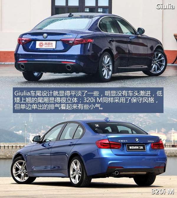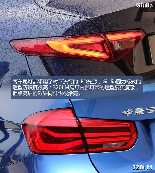 通过外观对比,我们可以看到这个级别的车型,无论是Giulia 2.0T 200HP精英版还是宝马320i M运动型都表现出了足够的运动感,同时细节方面也处理的非常精致,足以应对任何挑剔的客人了,当然因为每个人的审美理念不同,所以在应对不同车型时可能会有不同的判断,不同的设计风格,同样的靓丽。