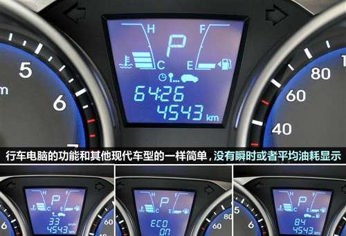 \u00A0\u00A0\u00A0 在配置上,ix35也非常取巧,因为它已经摸透了我们的消费心理,将无匙启动作为一项门槛很低的配置,而全景天窗的选装也不是很昂贵,不过在行车电脑方面,油耗显示其实是最直观而且最重要的,但现代的车型似乎一向不愿意向大家直接提供这一数字,尽管理论上它完全具有这个能力,因为它能计算续航里程。