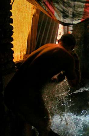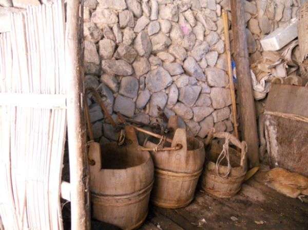 每次洗澡前水壶烧好开水,倒进木桶或大的洗澡盆,人坐在里面洗。三位女士都说,这种洗澡方式,她们太不习惯了。