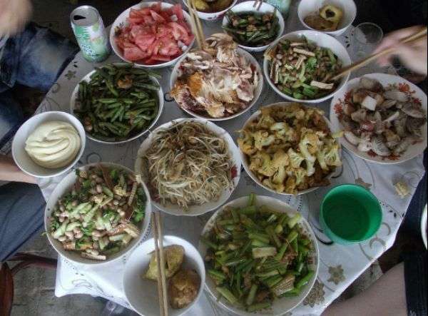 “吃个土豆炖粉条,就是一口大锅里炖,然后一桌子人围着一个大碗,每人都伸筷子进去……”