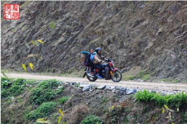 这位山村小伙骑着摩托,载着新婚的媳妇,被摄影师不小心抓拍到了。