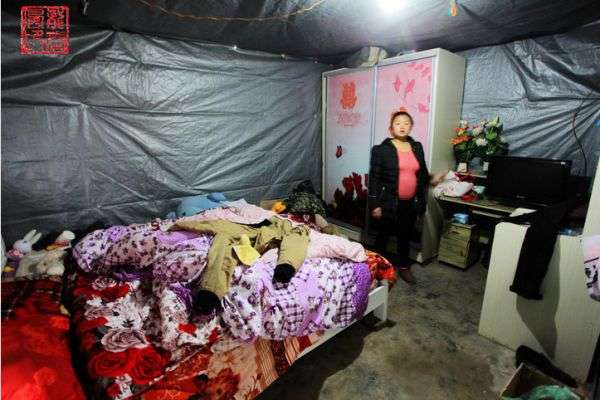 新房更让人眼界大开,为节约成本,三面墙上覆盖着灰色胶纸。一张廉价的大床,一柜一桌,就是新房的全部配置。
