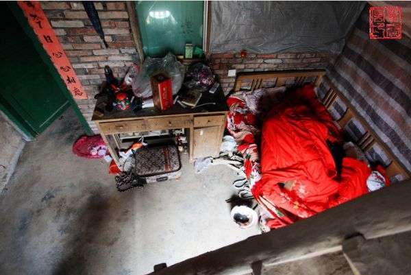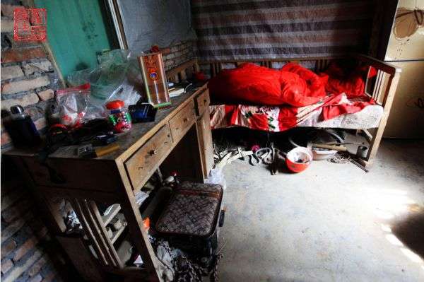 新房里还铺着结婚时崭新的大红被子,十分喜庆抢眼,与简陋的环境形成了鲜明的对比。