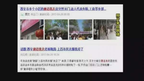 我们在网页上搜索“康洁洗衣”的字样,关于康洁公司的新闻便弹了出来。
