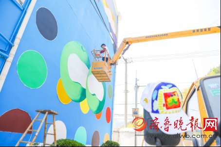 “克服了恐高”的潘罗敏创作出了这幅名为《马格里特的苹果》的彩色墙画