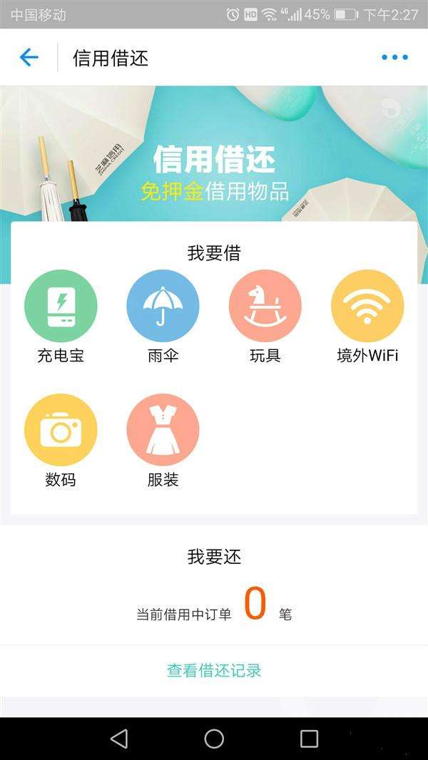 去年,芝麻信用推出了各种信用借还服务,包括充电宝、雨伞、玩具、境外Wi-Fi、数码、服装等。支付宝进入“芝麻信用”――“信用借还”即可查看。