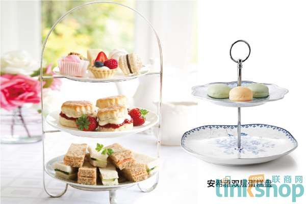 传统三层塔的最下层是放置各式咸味三明治,第二层放泡芙、饼干或巧克力,最上层放蛋糕及水果塔。若在家要简单点,选择一些喜爱的马卡龙、曲奇,双层蛋糕盘就很适用。