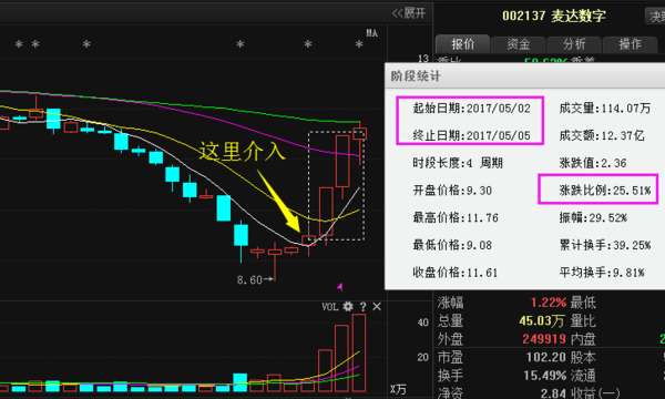 麦达数字是本周最成功的一只牛股布局,在5.2日盘前选出,当天布局,介入之后直接两个涨停板。本周涨幅高达25%。这就是一分钟选股法的神奇之处,就算是本周如此行情下依然能选到这样的牛股。这就是军哥看盘微信agu569粉丝朋友们所能获得的利润空间。