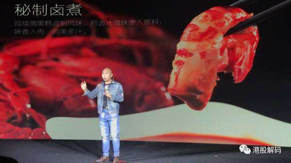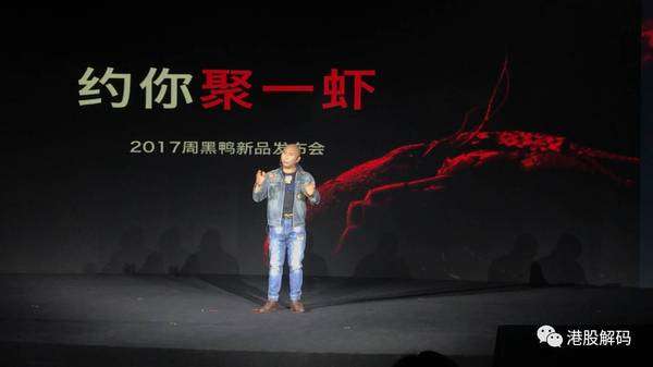为迎接新品小龙虾的推出,周黑鸭于5月5日在武汉举办盛大新品发布会,创始人兼主席周富裕笑称,食品公司也要像苹果、乐视等科技公司一样讲产品。他在发布会上指出,2016年小龙虾市场容量达1000亿元,平均每人在吃小龙虾上的花销达84元,仅湖北省武汉市一年就消耗1500吨小龙虾,这些小龙虾头尾相连可绕地球83圈!
