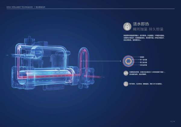 为什么说这款马桶安全性能高呢?我们先看一下市面上传统的储热式智能马桶是什么样的构造:水箱中的加热装置是直接内置于水中的,其原理就如同过去常见的“热得快”,很显然,这样裸露的设计一定存在漏水漏电等安全隐患。而恒洁智能双Q马桶不是这样,它属于即热式智能马桶,采用的是水电分离设计,水路与电路相互独立,互不干扰,即使马桶里面的水管线路出现漏水,也不会与电路接触,彻底避免了短路漏电危险。