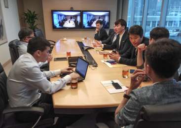双方在会议上密切交谈