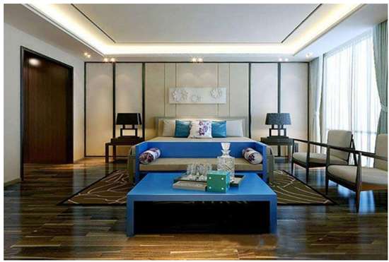 选用具有文化属性的颜色,可以凸显主人品味、卧室中可以选用麻灰色作为过渡,要注意与主体色的协调一致。对于地面木地板的选择安信地板推荐二翅豆实木地板、香脂木豆等都是一些非常适宜的地板。