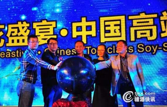 销售公司副总经理陈建伟(左一)共同启动青花盛宴