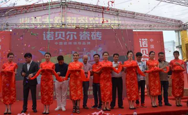 活动剪彩仪式将开业典礼活动推向高潮。11点左右,云南杰然建材有限公司董事长尤学兵、杭州诺贝尔陶瓷有限公司昆明分公司总经理孙达伟、昆明大商汇建材家居总经理李智信、昆明市建筑装饰材料行业协会会长李江、中国建筑学会室内设计分会CIID云南专委会会长邓鑫先生、云路地产总经理王东一齐举起剪刀开始剪彩,礼花齐放,现场处处洋溢着热闹和喜庆。