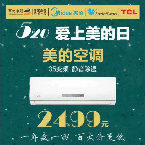爱一人倾一城,爱不但要说出来,更要用行动来证明,5月20-21日520爱上美的日 \u00A0【百大电器蚌埠百货大楼六搂家电】美的全产品&TCL电视全品内购会!与您相约呦!
