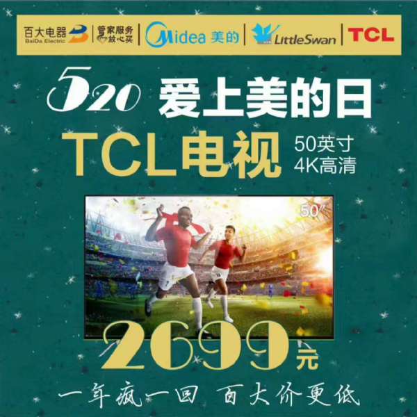 广告丨520爱上美的日 百大电器美的全产品&TCL电视全品内购会