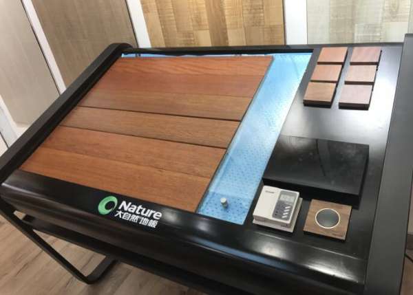 实木地板:实木系列为高端系列,价位在300元/平米――1700元/平米,部分产品适合地热。为了展示大自然地板的实木是一款适合地热的产品,在店内特别设置了导热台对地热房间进行情景模拟,可以很直观的感受到产品不变形,并能用手直接感触到地板的导热性。