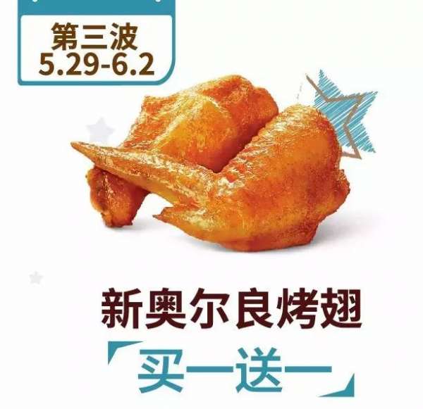 使用规则:5月29日前注册的老会员和5月29日-6月2日注册的新会员都可凭券享受优惠;以单品价购买新奥尔良烤翅(2块)时可享买一送一优惠,使用有效期:2017年5月29日-2017年6月2日