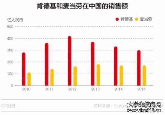 据上图,2010-2015年,肯德基在中国的销售额还是远超麦当劳,约是麦当劳的两倍,然而销售额的差距自2012年之后逐年缩小。